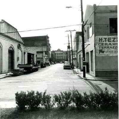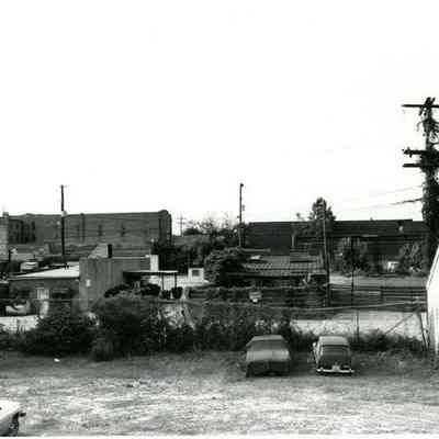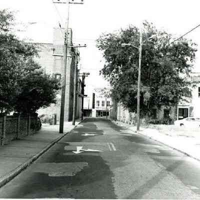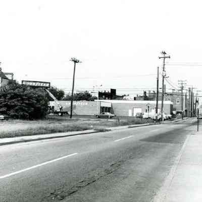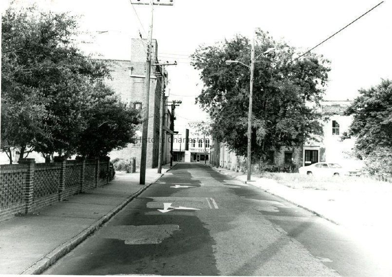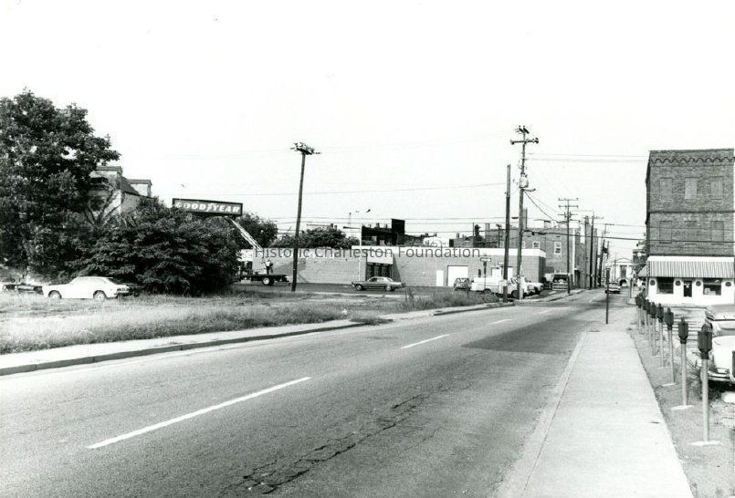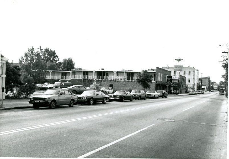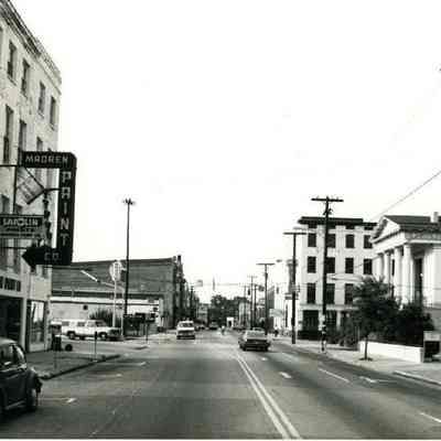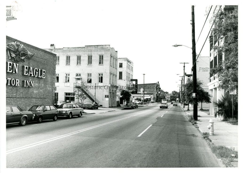 t: Looking north on Meeting Street toward Market Street, from the Golden Eagle Motor Inn. Madren Paint Co. (177 Meeting) also in view.