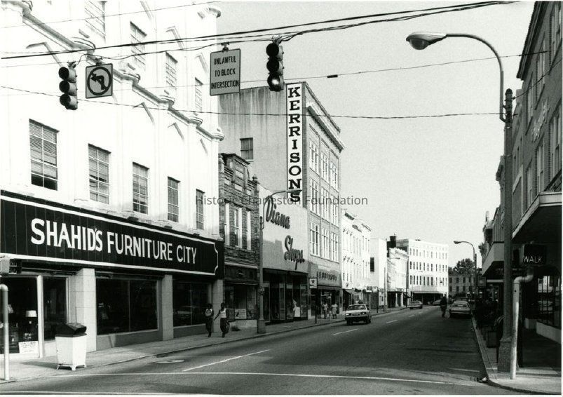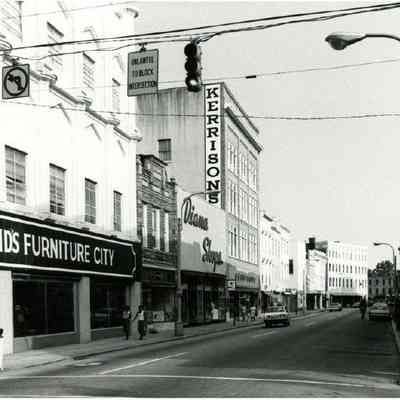 g: Looking south on King Street from Wentworth Street. 270 King (Shahid's Furniture City) at left and 273 King Street at right, down to ~240 King. Diana Shops (264 King) and Kerrisons building (260 King) in view.