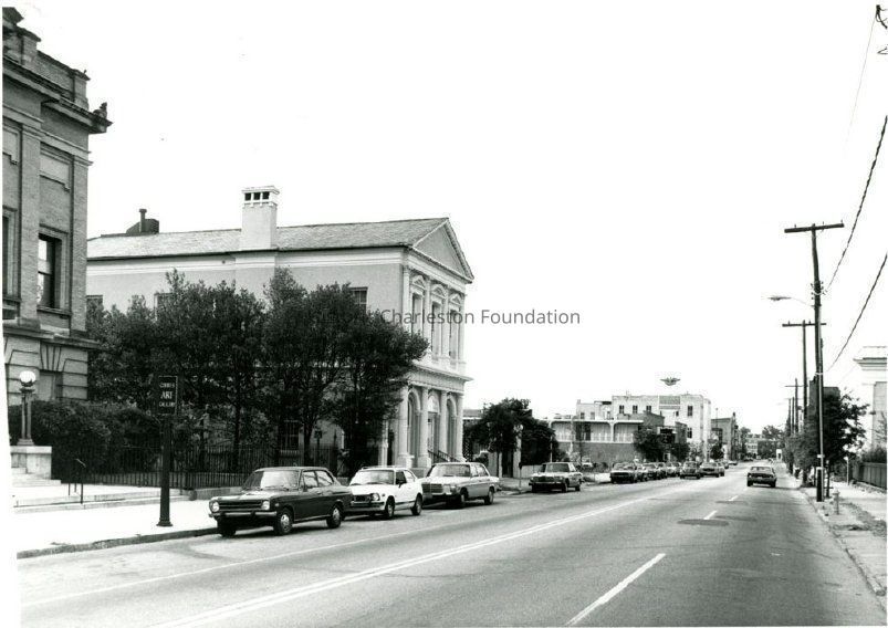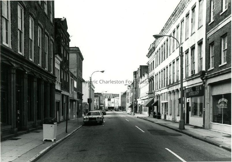 r: Looking north on Meeting Street toward Market Street, from the 135 Meeting (Gibbes Art Gallery) and 141 Meeting (Charleston Gas Light Co. Building) at left.