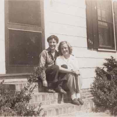 b: Two women sitting on the front steps of an unidentified house numbered 199. Location unknown.