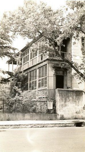 Photograph of the west (piazza) side of the Col. William Rhett House (54 Hasell Street). Piazza is enclosed.Collection