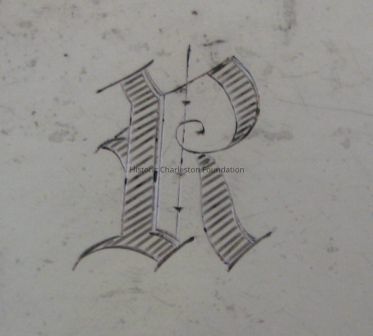 Sandwich plate, silver, engraved bottom center with shaded 'R'. Stamped sterling, hallmarks of Gorham.Collection