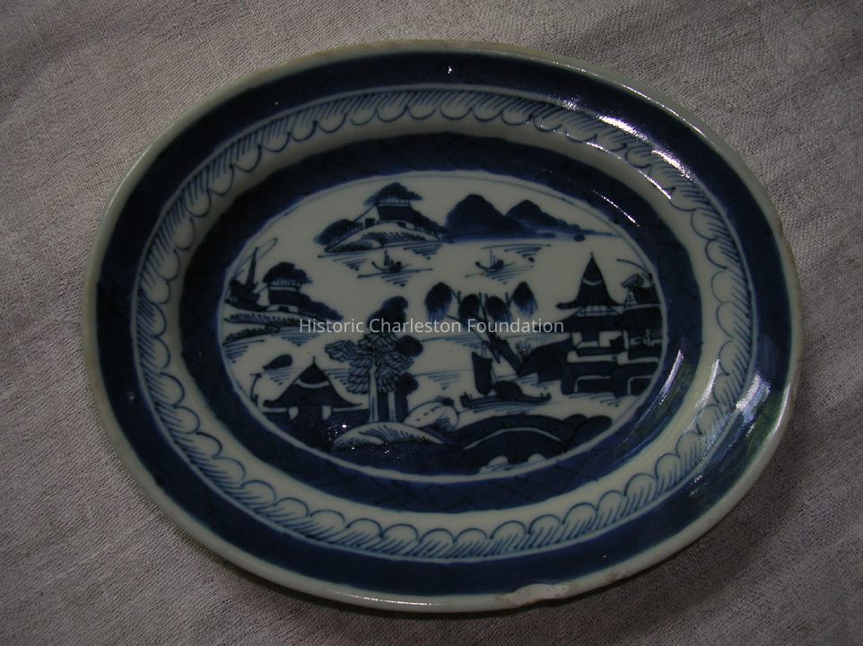 Two chips on rim; rim also has abrasions along upper edge and on right edge. Chip to underside of left side. Normal wear to bottom.
