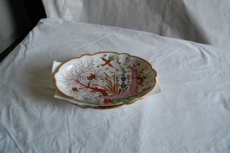One of two oval platters, porcelain, English, Flight, Barr and Barr, part of 'Japanese' pattern service, circa 1813. Stamped on underside crown over Flight, Barr and Barr; oblong fluted body with scalloped border.Collection