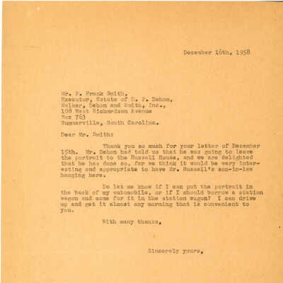 conservation paid through donation pf $1500 by Mrs. Frederick Dehon of West Palm Beach and remainder of monies $500 from the Russell Family Fund.Created By