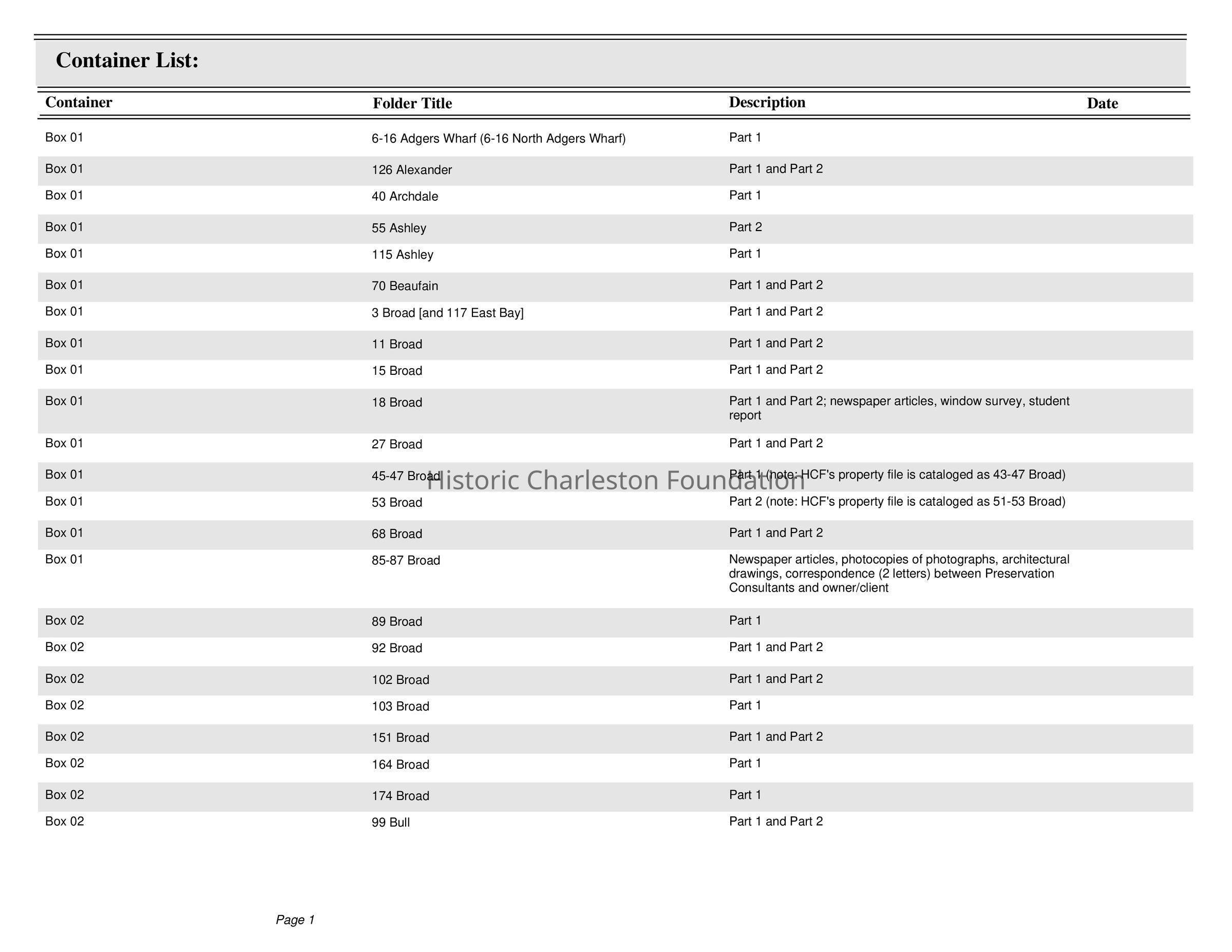 Part 1 (note: HCF's property file is cataloged as 43-47 Broad)Container
