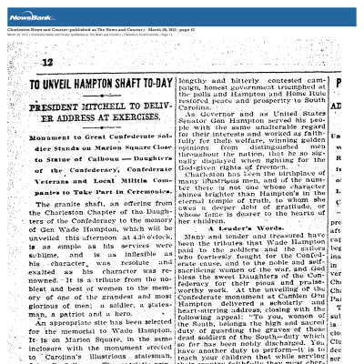 Survey of Charleston memorials, monuments, statues, and other public tributes done by Katherine Pemberton (HCF) and interns in the summer of 2018. Undertaken in the wake of the debate over issues related to contested symbols of the past, which peaked after the 2015 murders of at Emanuel A.M.E. Church and after white supremacists rallied in Charlottesville, Virginia in 2017 against the removal of a statue of Confederate General Robert E Lee. These events and others raised several questions about how has the past been interpreted in Charleston; how should its history be interpreted and remembered; who gets to decide; should particular monuments erected to celebrate an event or person from the past be reevaluated for its present-day relevance or should it be removed if its presence in the public square is offensive or should that monument be edited or changed to provide additional context? Historic Charleston Foundation's position is that in order to make informed decisions about how or whether to add or subtract monuments/markers from the cityscape, these public displays needed to be identified. In late December 2017, HCF staff began this marker/monument survey on the Charleston peninsula and identified 110 markers, plaques, monuments, statues, busts and objects and created this database in which each marker/monument has been categorized so that they may be quantified. For example, how many relate to African American history or commemorate various wars? What time periods are most represented in our monuments to the past? Who placed those markers and monuments and when were they placed? Preliminary results suggest that there are indeed areas of our shared history that deserve more attention.