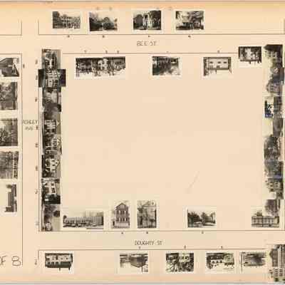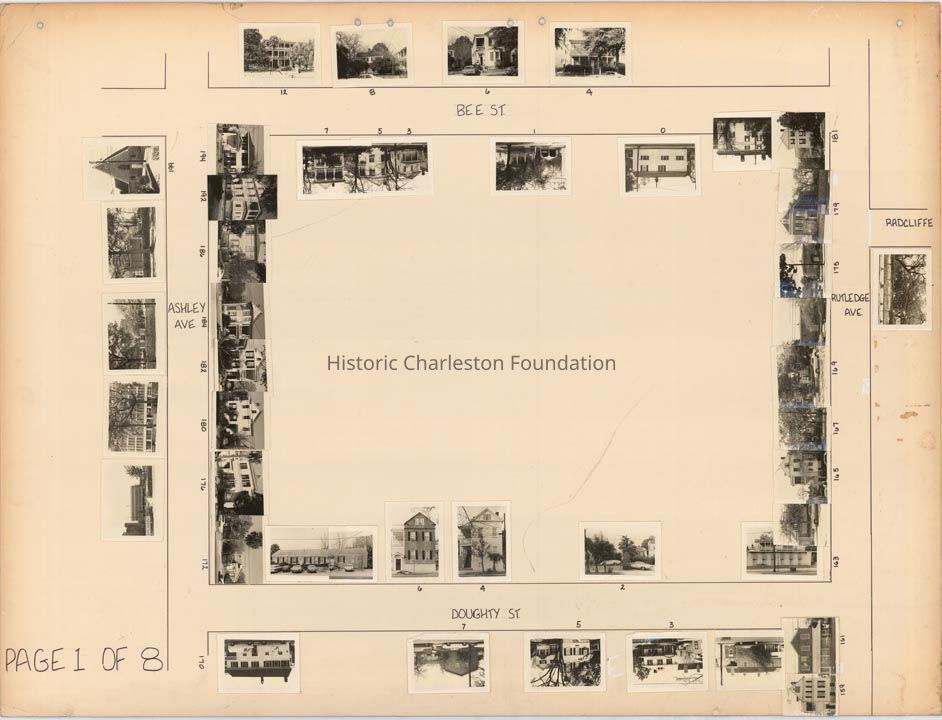 Board 3 (p. 1): Area bounded by Bee Street, Rutledge Avenue, Doughty Street, and Ashley Avenue. Features photographs of 0 Bee, 1 Bee, 3 Bee, 4 Bee, 5 Bee, 6 Bee, 7 Bee, 8 Bee, 12 Bee -- 159 Rutledge, 161 Rutledge, 163 Rutledge, 165 Rutledge, 167 Rutledge, 169 Rutledge, 175 Rutledge, 179 Rutledge, 171 Rutledge -- 2 Doughty, 3 Doughty, 4 Doughty, 5 Doughty, 6 Doughty, 7 Doughty -- 170 Ashley, 172 Ashley, 176 Ashley, 180 Ashley, 182 Ashley, 184 Ashley, 186 Ashley, 192 Ashley, 194 Ashley, and MUSC buildings 171 Ashley, 175 Ashley, 199 Ashley.
