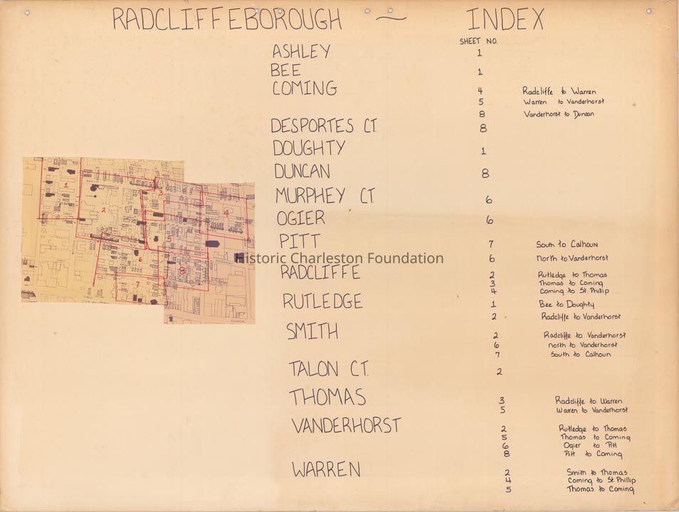 Radcliffeborough, Ashley Avenue, Bee Street, Calhoun Street, Coming Street, Doughty Street, Duncan Street, Murphy Court / Murphy's Court, Ogier Street, Pitt Street, Radcliffe Street, Rutledge Avenue, Smith Street, St. Philip Street, Thomas Street, Vanderhorst Street, Warren Street, Neighborhoods--Conservation and restoration--South Carolina--Charleston, Neighborhood planning--South Carolina--Charleston, Historic preservation--South Carolina--CharlestonLegacy Lexicon