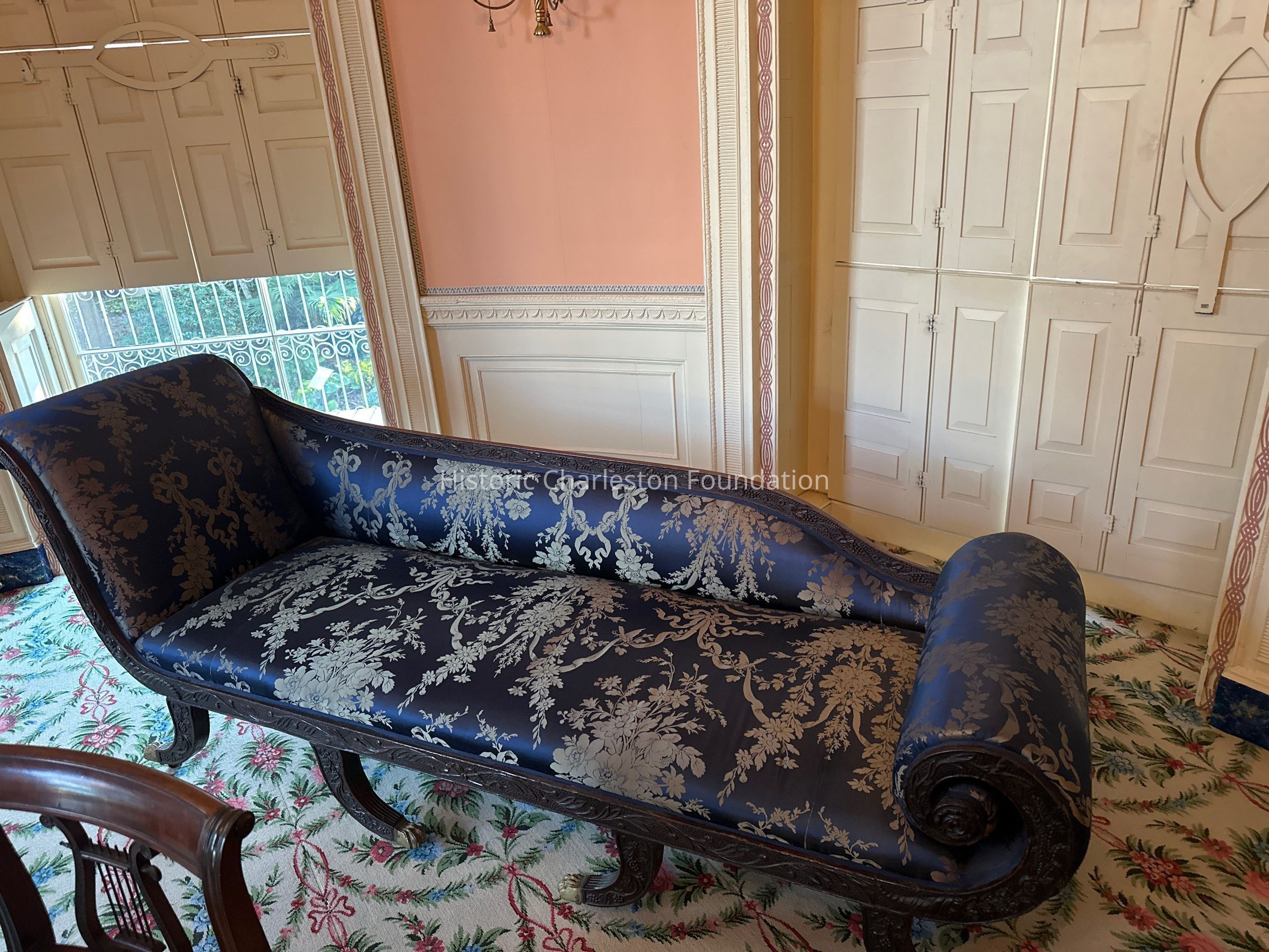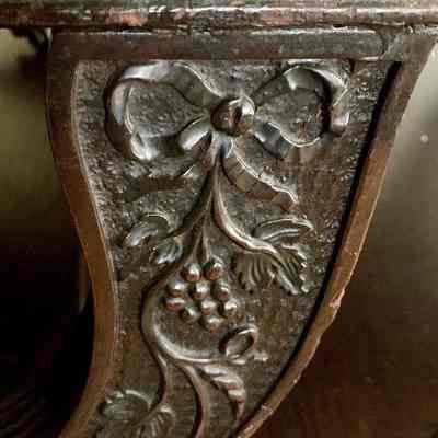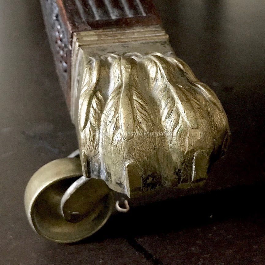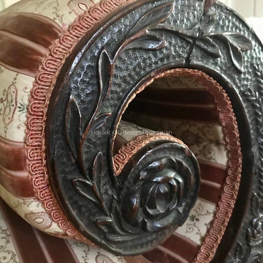Closely related carving on a star-punched ground likely carved by the same hand as this sofa is found on several pairs of bellows attributed to Samuel McIntire’s son, Samuel Field McIntire (1780-1819). He worked closely alongside his father and continued in the business after the elder McIntire’s death in 1811. One pair of bellows is in the collection of Winterthur Museum while two other examples are in private collections. Three of the aforementioned examples are illustrated by Lahikainen in Samuel McIntire as figs. 4-33, 4-144, and 4-168, pp. 119, 164 and 174. Another pair with carving by Samuel Field McIntire was in the collection of Mr. and Mrs. Joseph K. Ott and sold at Christie’s, January 20, 2012, sale 2635, lot 144.