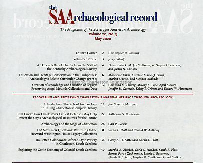 Articles about archaeology in Charleston from The SAA Archaeological Record [magazine], v. 20, n. 3, May 2020: