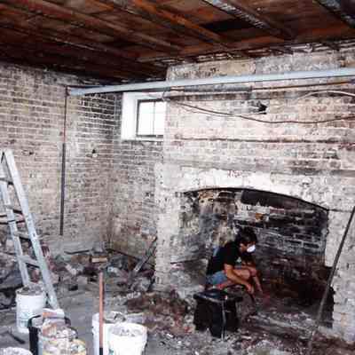 c-h: Cleaning and restoration of the kitchen house fireplace.