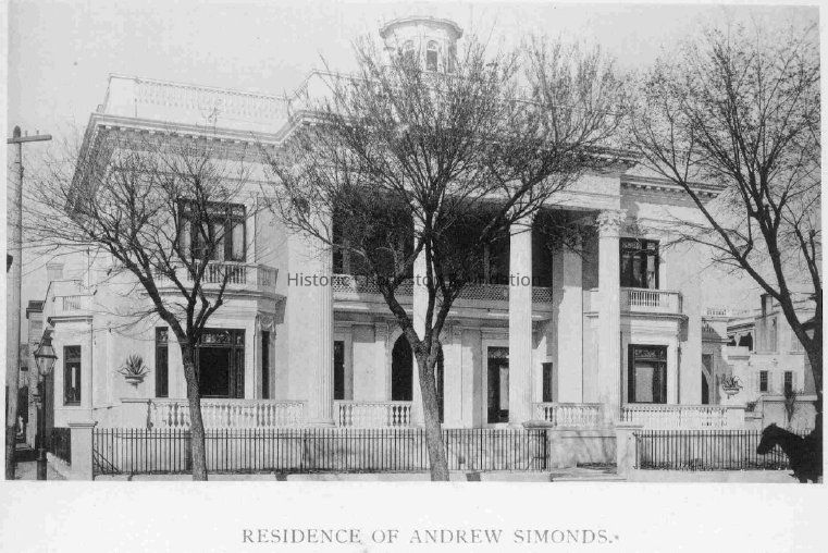 Photograph of the residence of Andrew Simonds located at 4 South Battery; street (front) elevation. Now known as Villa Margherita. Horse in lower right corner.Context