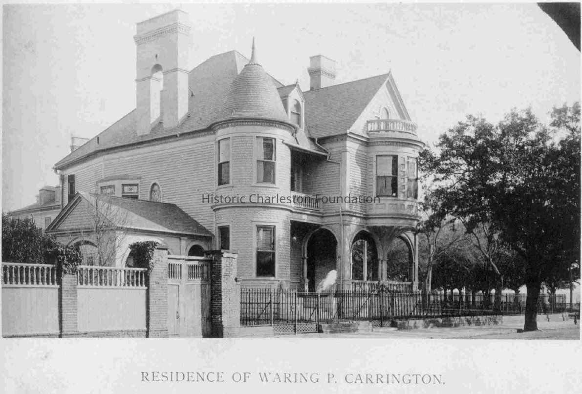Photograph of the residence of Waring P. Carrington (2 Meeting Street/Carrington-Carr House), street elevation, northwest corner.Context