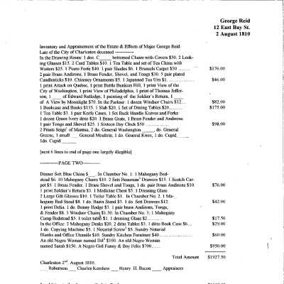 George Reid, 12 East Bay Street. Date of document: August 2, 1810. (Later 53 East Bay and/or 55 East Bay.)Date(s) of Creation
