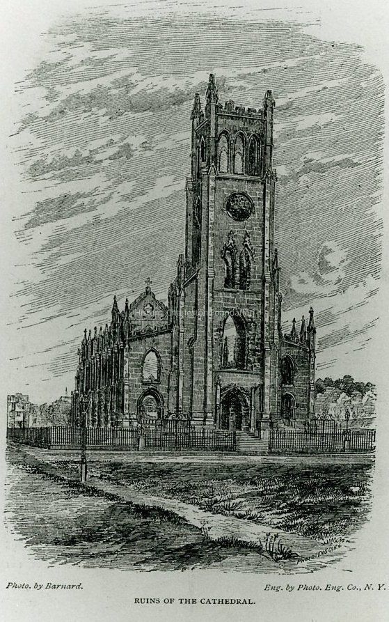 Photographic reprint of an engraving of the ruins of the Cathedral of St. John and St. Finbar (122 Broad Street). Original engraving from Charleston Illustrated, 1875; photo by Barnard, engraving by Photo. Eng. Co., N.Y.Collection