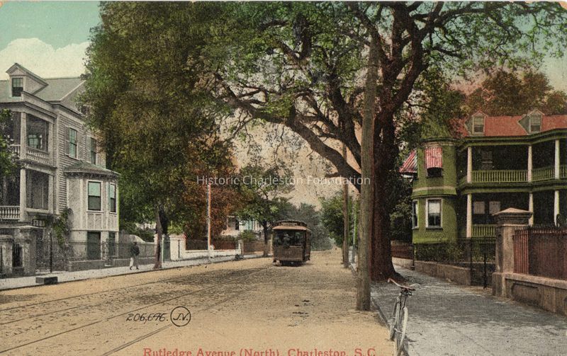 Postcards, Streets, Rutledge Avenue, Streets--South Carolina--Charleston, Dwellings--South Carolina--Charleston, Lost architecture--South Carolina--Charleston, Bicycles, Trolley carsLocation