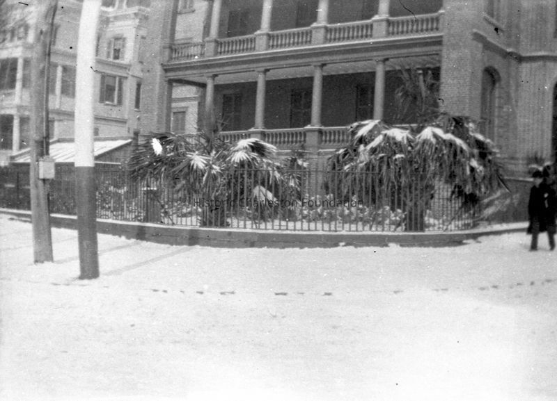 Twenty B&W photographs (scans of negatives) of dogs, a child, boy playing with dog, horses, rivers, Confederate Veterans parade, the Battery in the snow (showing DeSaussure House at 1 East Battery, George Robertson House at 1 Meeting Street, and Stevens-Lathers House at 20 South Battery).
