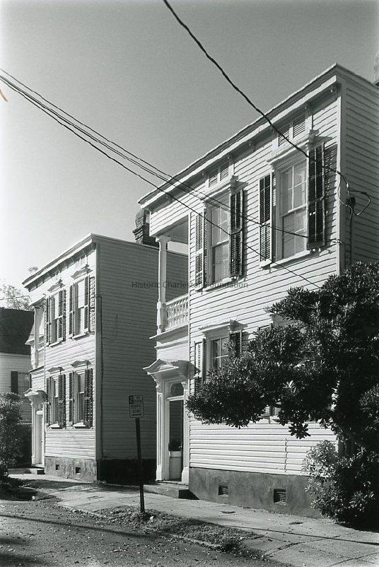 Constructed circa 1880. At the death of Louis Sherfesee, who owned a parcel measuring 218 by 118 feet on Gadsden Street, a section of this lot was sold to Samuel Wilson. Wilson built two houses for investment purposes on the site. These two nearly identical single houses, with flat roofs extending over their southern-facing, double-tiered piazzas, retain their original Italianate door architraves and turned columns. The windows on 23 Gadsden have Italianate surrounds, while the lintels on 25 Gadsden are flat. Originally the houses had four-over-four light windows on the front elevation. The second story and windows on 23 Gadsden have been altered. (Poston, Buildings of Charleston.)Collection