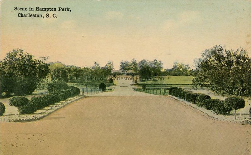 Postcard featuring a view of Hampton Park.