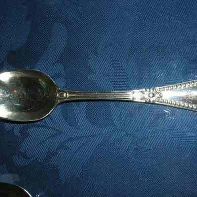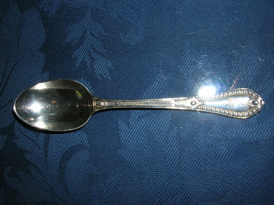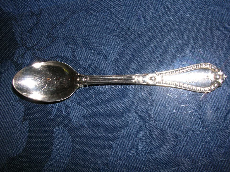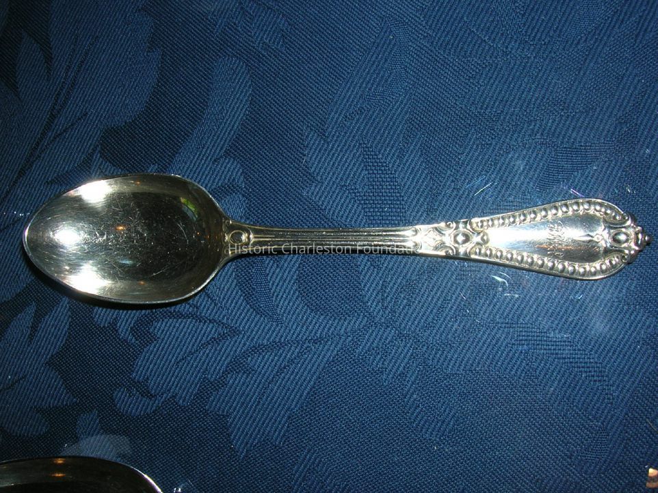 Five silver Renaissance Revival coffeespoons from 1877-78. London. 6" Engraved with overlapping CAH. bar of H marked 25 April 1877. Possibly for Charles Albert Hill who married Jane Louise Allston.Collection