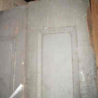 Set of two French doors, each measures 86"H x 18"W. One vertical panel each; hardware missing. Damage to top right side.