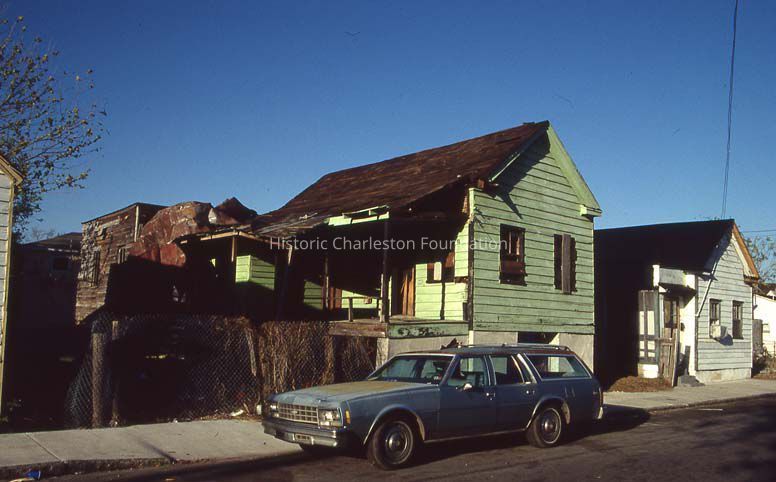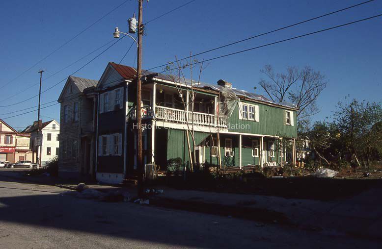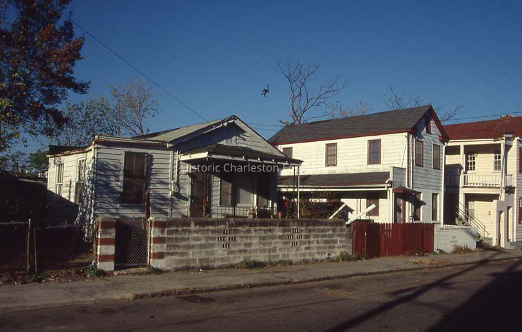 Twelve (12) color slides of Sheppard Street dwellings. Each photo is identified by the address of a featured house, however, most show neighboring buildings as well. Some structures may have been demolished. Slides undated but likely taken soon after Hurricane Hugo.