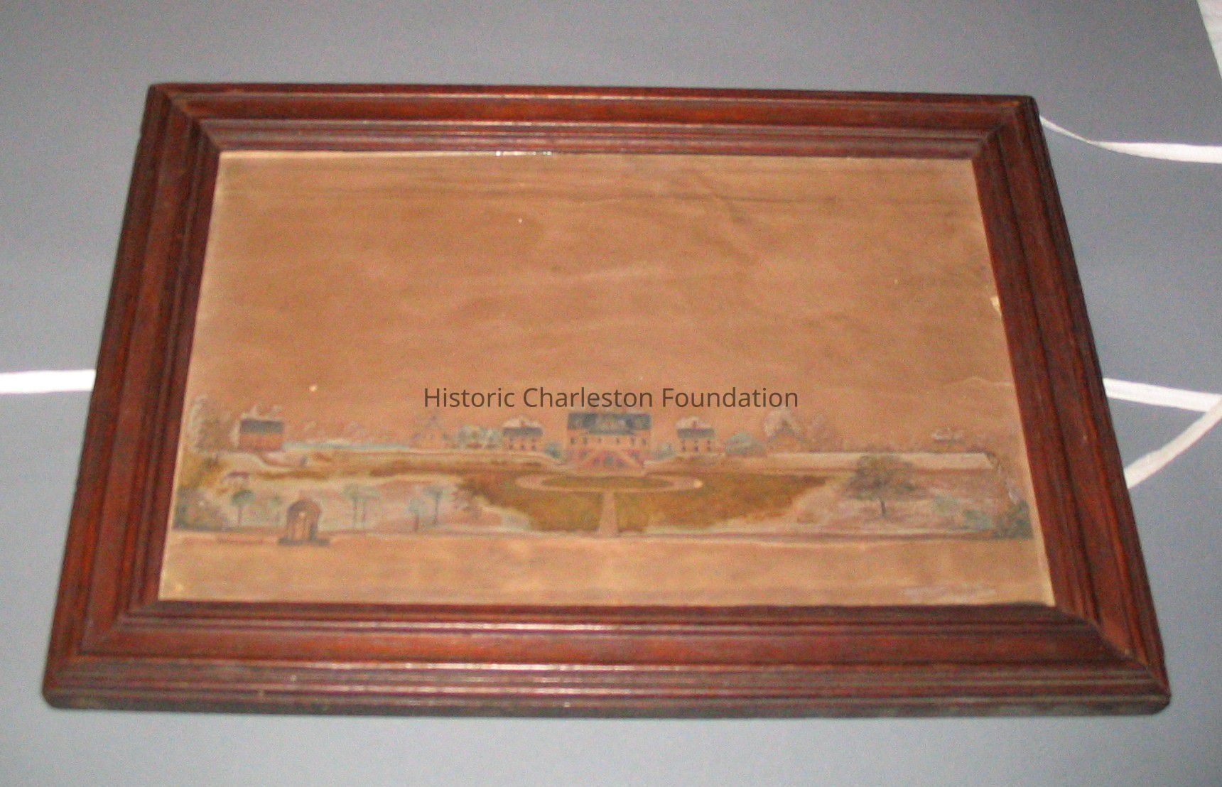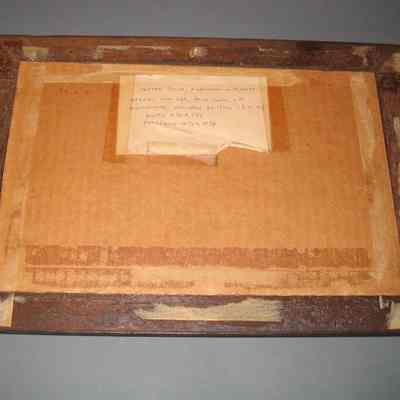 The paper was archivally hinged suing Japanese paper/starch paste onto buffered ragboard and reframed with spacers toned with watercolors in a sealed package consisting of the glass, matted picture, and 5 mil Mylar D on the back, taped wound the edges with 3M 810 tape.
