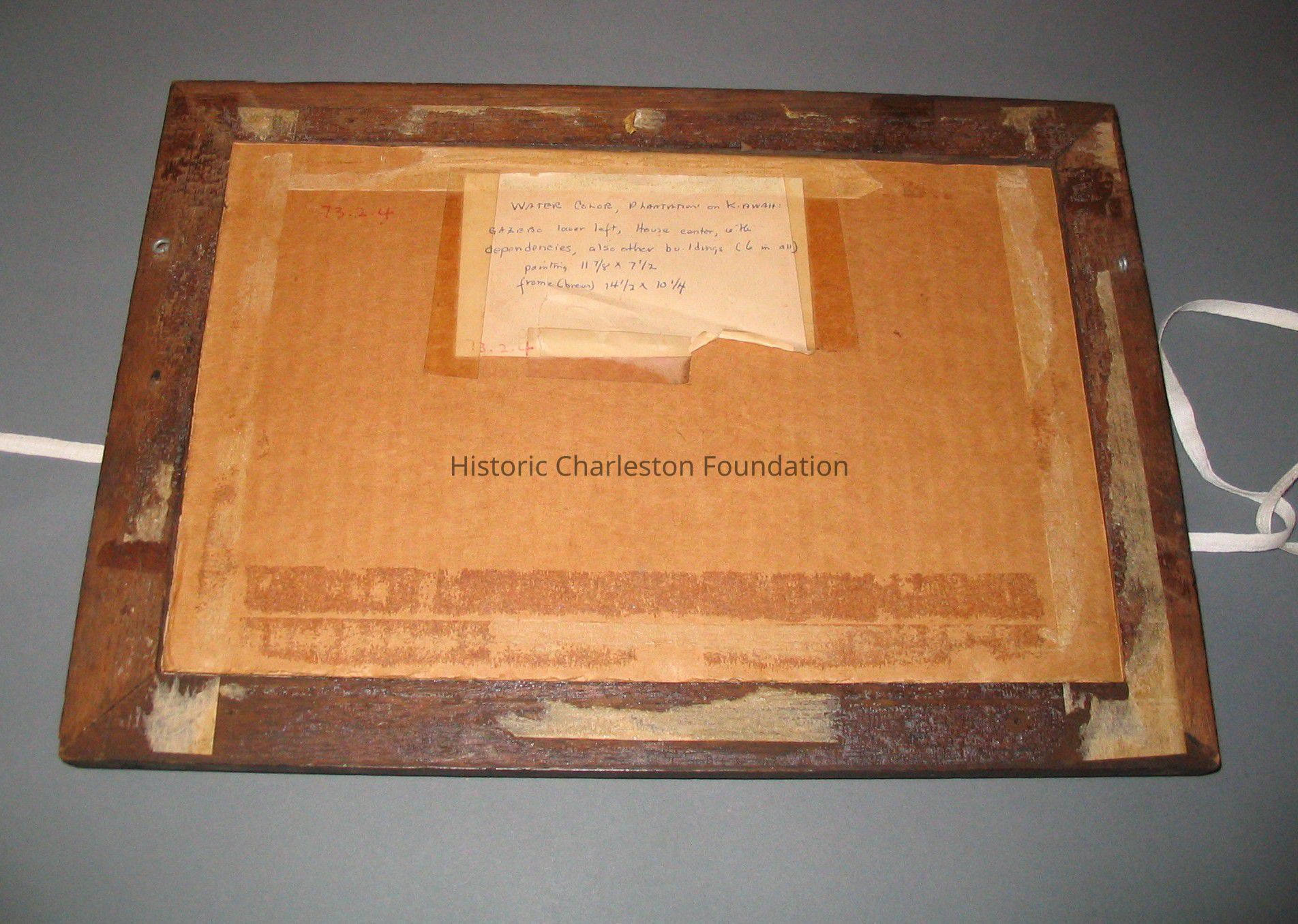 The old backing materials were placed on the back of the frame behing the picture and covered with mylar for protection.