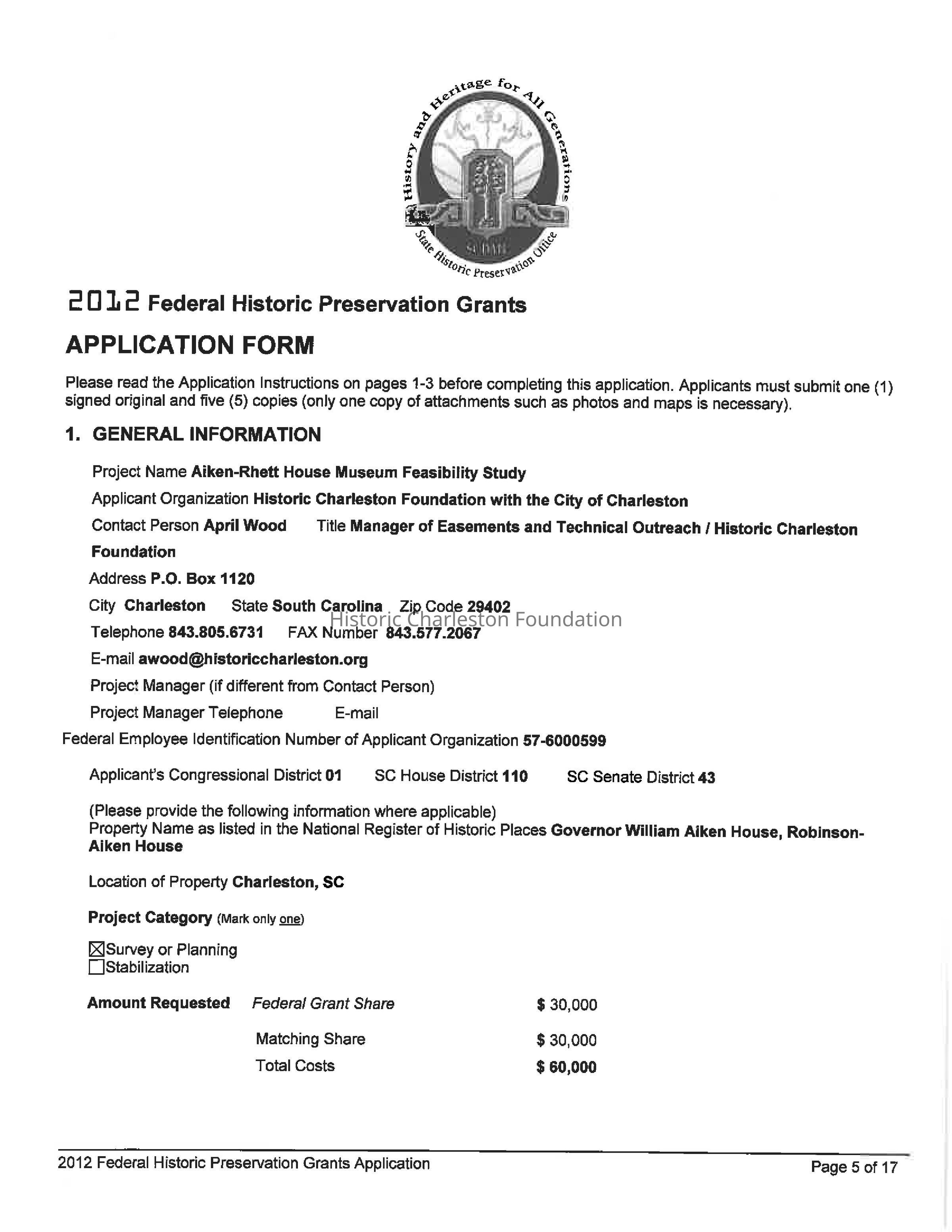 Grant to conduct a feasibility study on the Aiken Rhett House to explore different philosophical approaches for maintaining and interpreting the Aiken-Rhett House and to enumerate the costs and viability of each proposed approach for the treatment and interpretation of the property.Collection