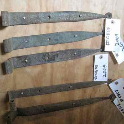 Seven strap hinges/shutter hinges from a group of 24. Most with bean ends.Collection