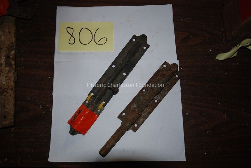 Five shutter slide bolts from a mixed set of 8, from the 18th-19th century.Collection