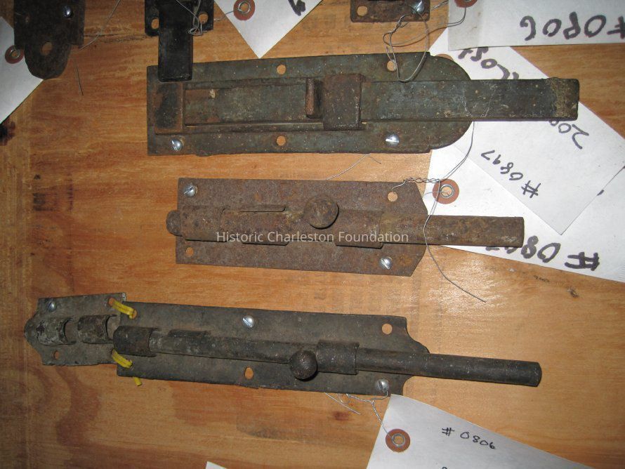 Three shutter slide bolts from a mixed group of 8, from the 18th-19th century.Collection