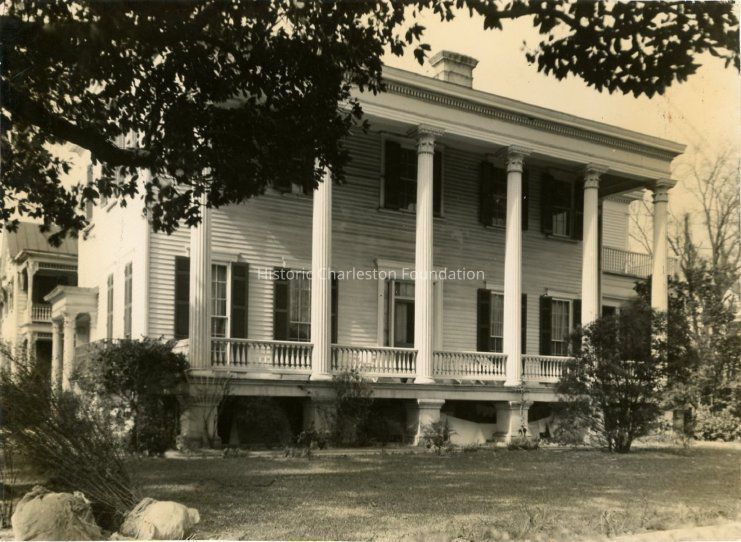 B&W photograph of 178 Ashley Avenue (Wicliffe House), side elevation showing the giant-columned portico.