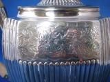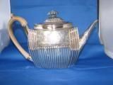 Neoclassical Tea Service with Teapot, Cream Pitcher and Sugar Basket. All Marked London But Teapot and Cream Dated 1801/2, Sugar Dated 1798/99. Teapot with Wooden Handle and Lid Finial. Fluted Panels Alternating with Gadrooned Panels Over Which Are Chased Panels of Acorns and Thistles. Sugar Basket with Handle on Octagonal Base with Same Alternating Panels. Silver Handled Creamer with Same Decoration. Each By Different Makers. Teapot By "Cf" and Fully Marked on Underside. Pitcher By "Sa" and Fully Marked on One Chased Panel. Sugar Basket with Double Maker's Mark "GS TH", Fully Marked on Rim of Base.Collection