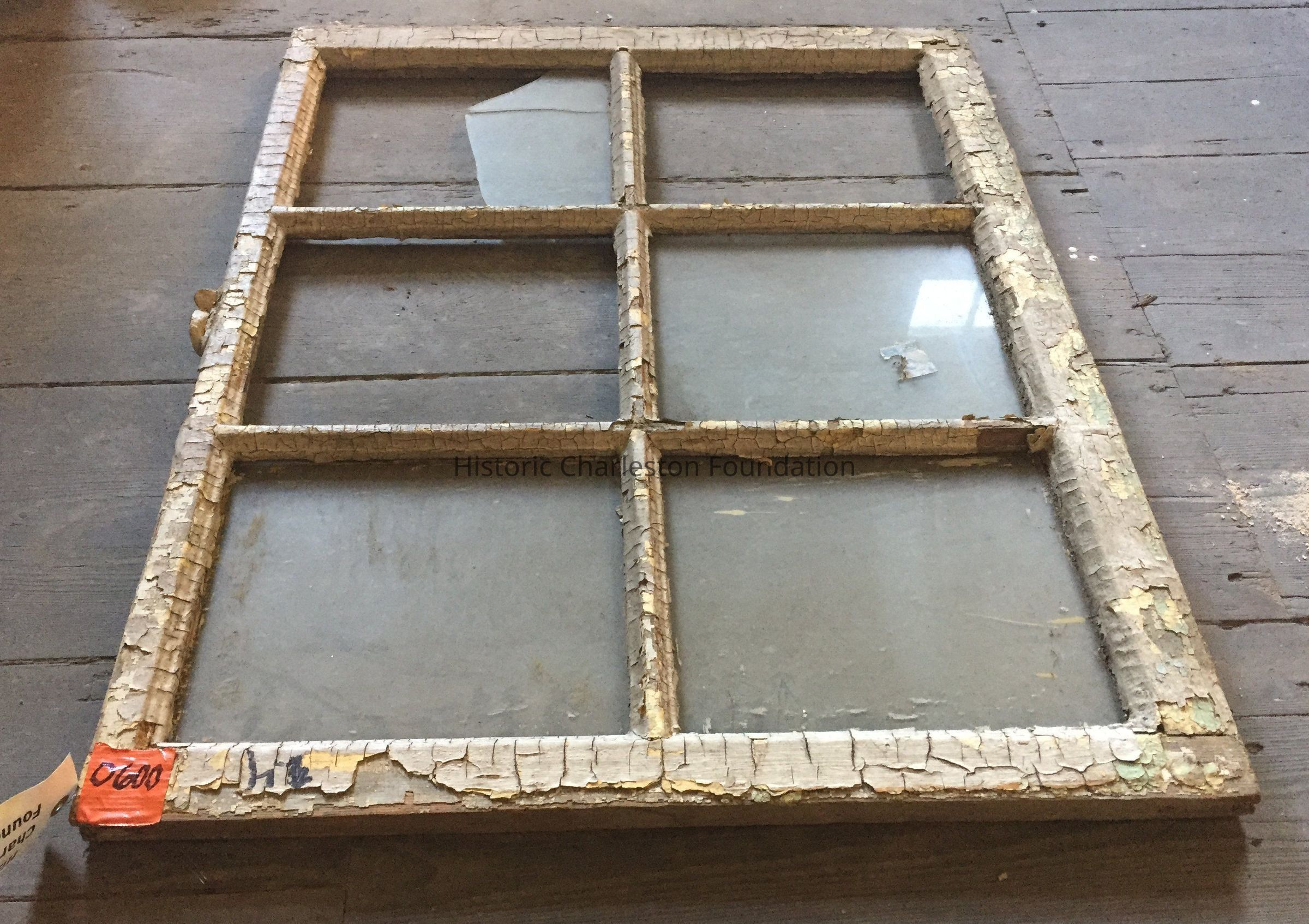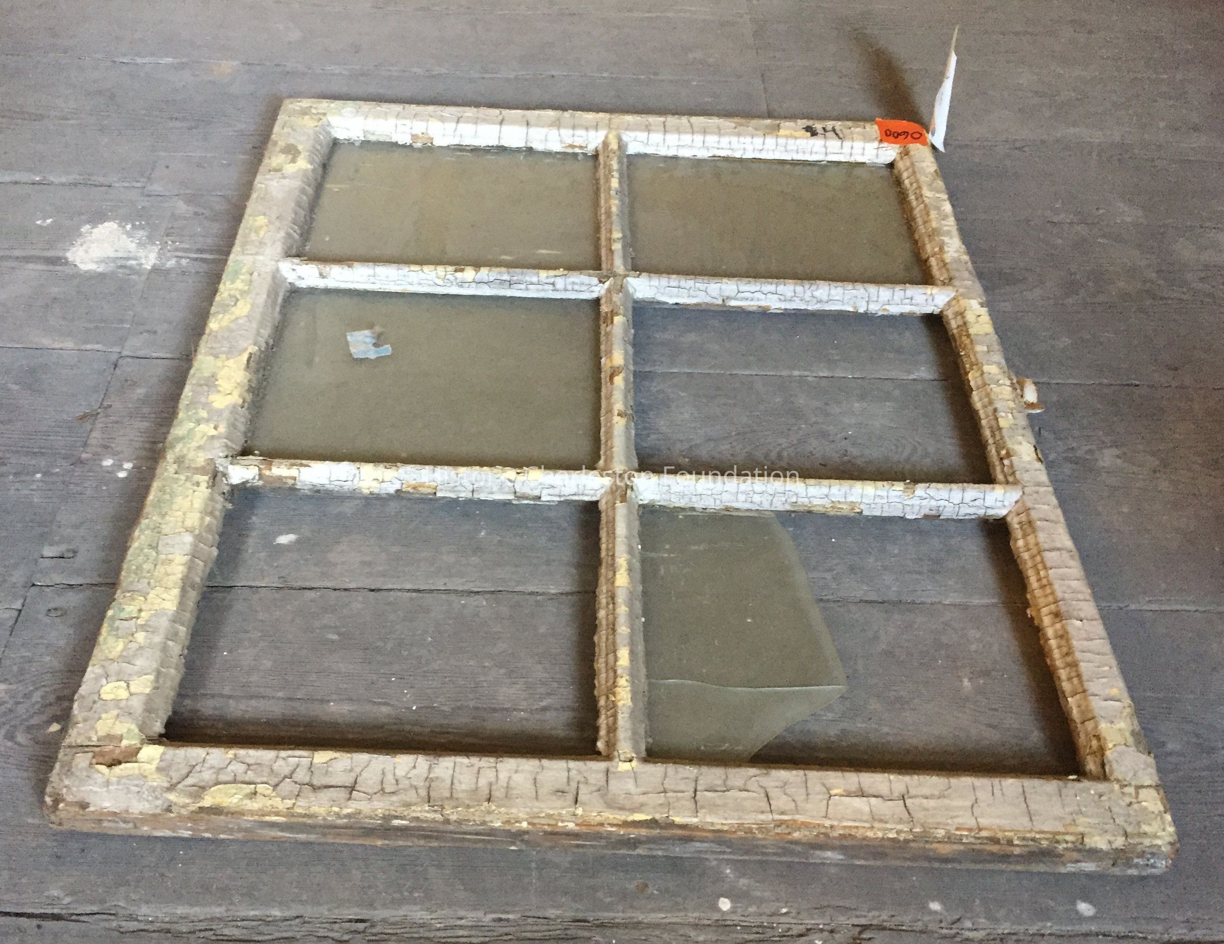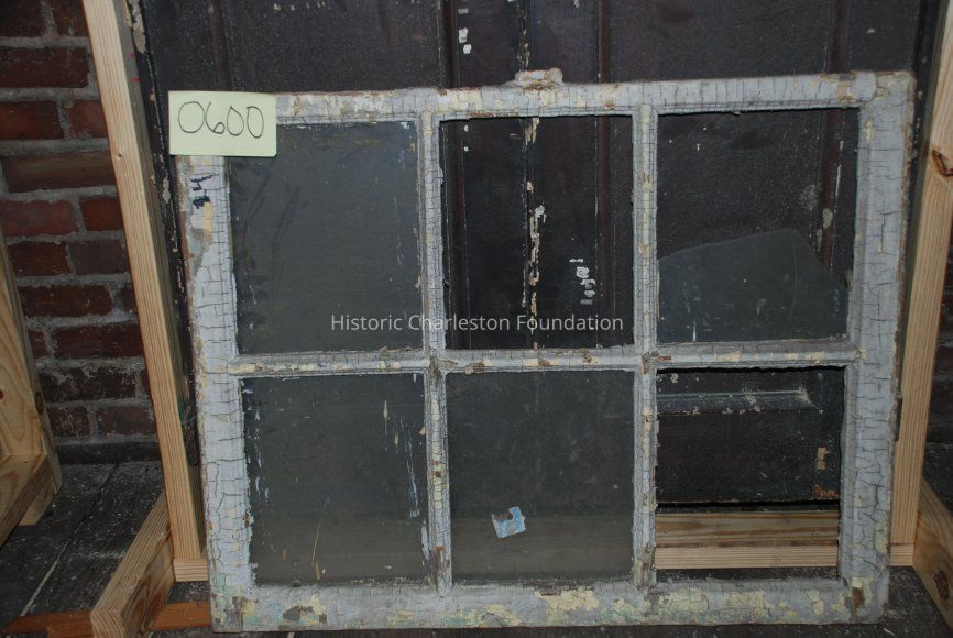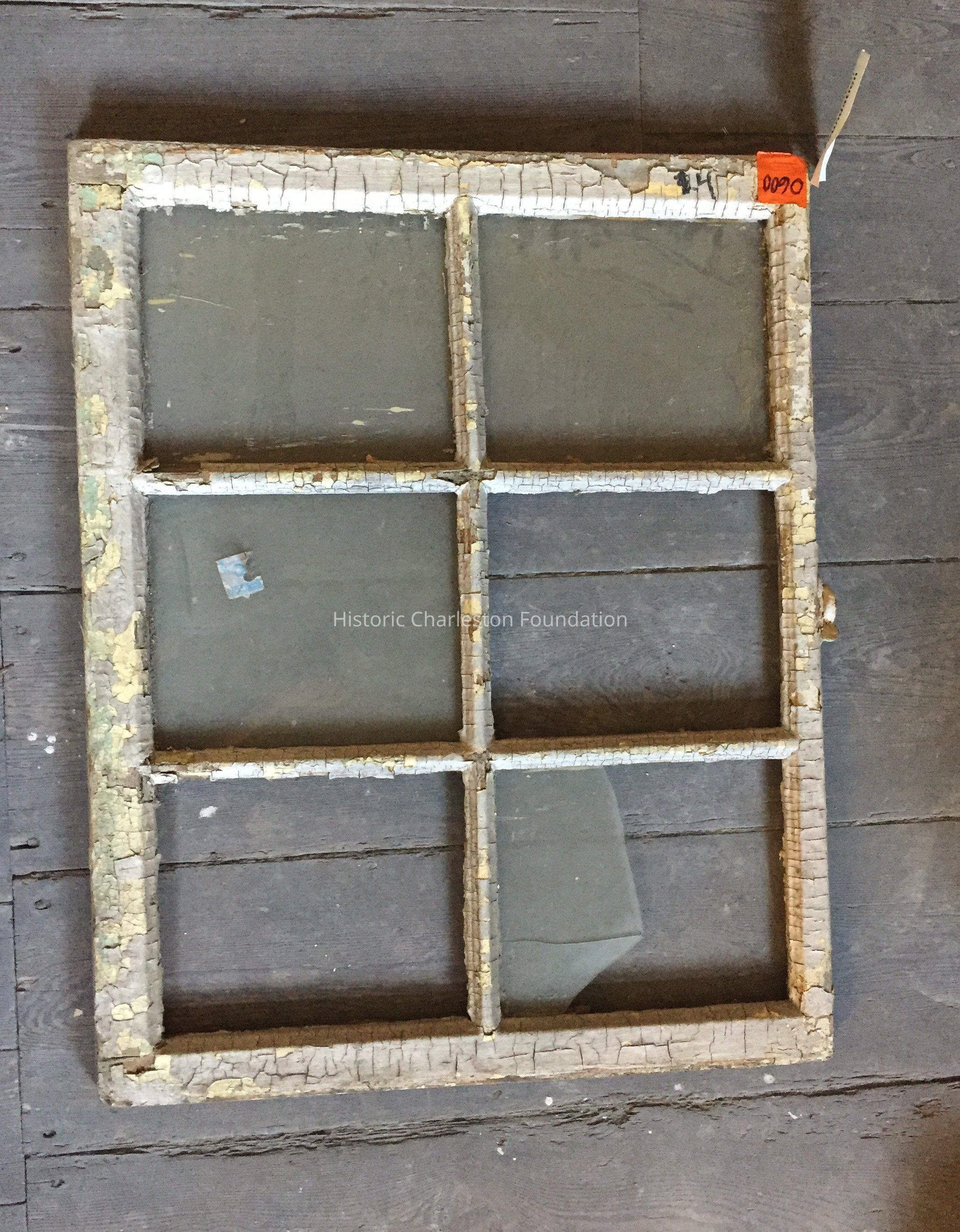 Window. Federal style, ca. 1790-1810. Six lights. Heavy muntin. One broken light and two missing lights; chipping paint; hardward is rusted.Collection