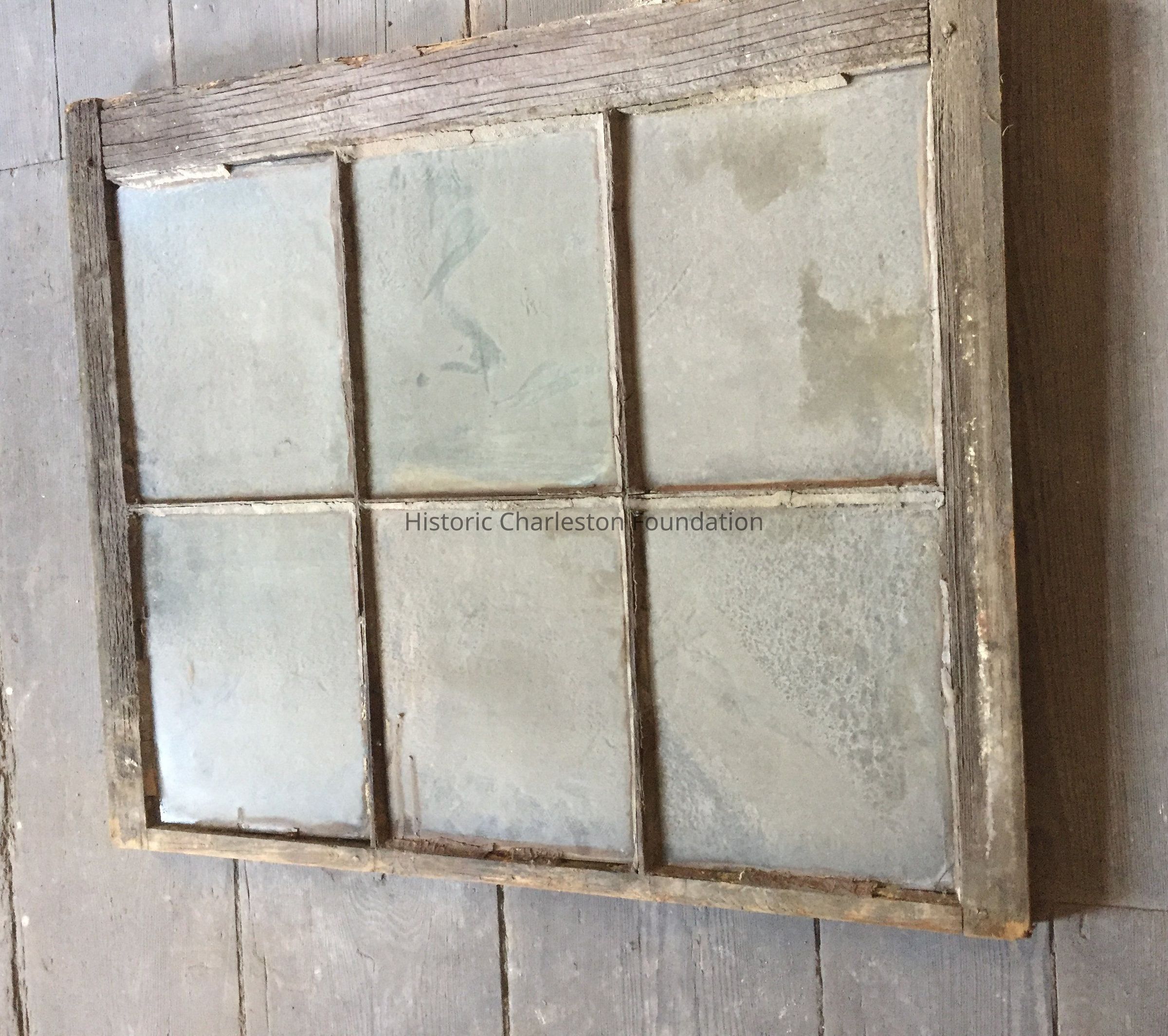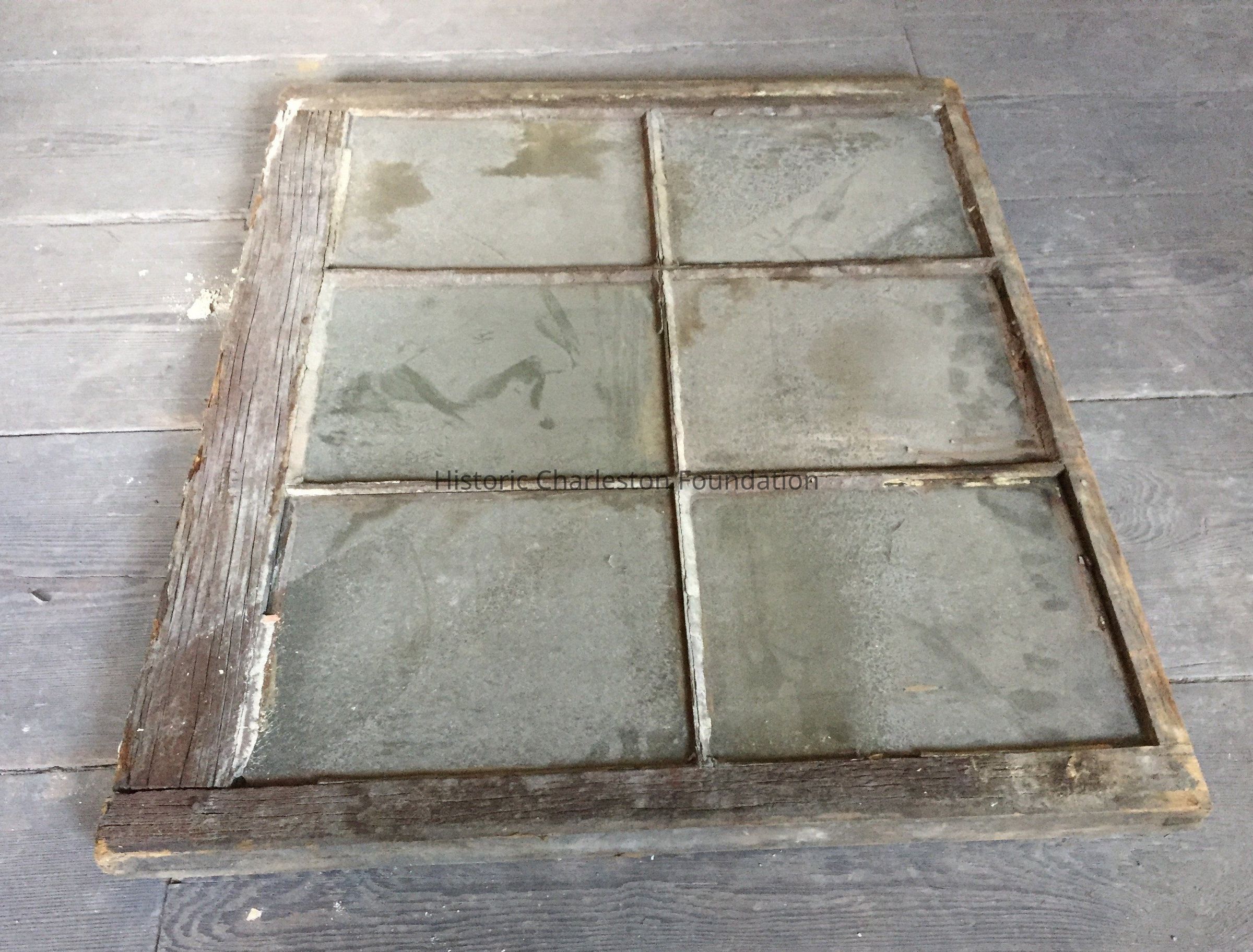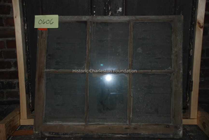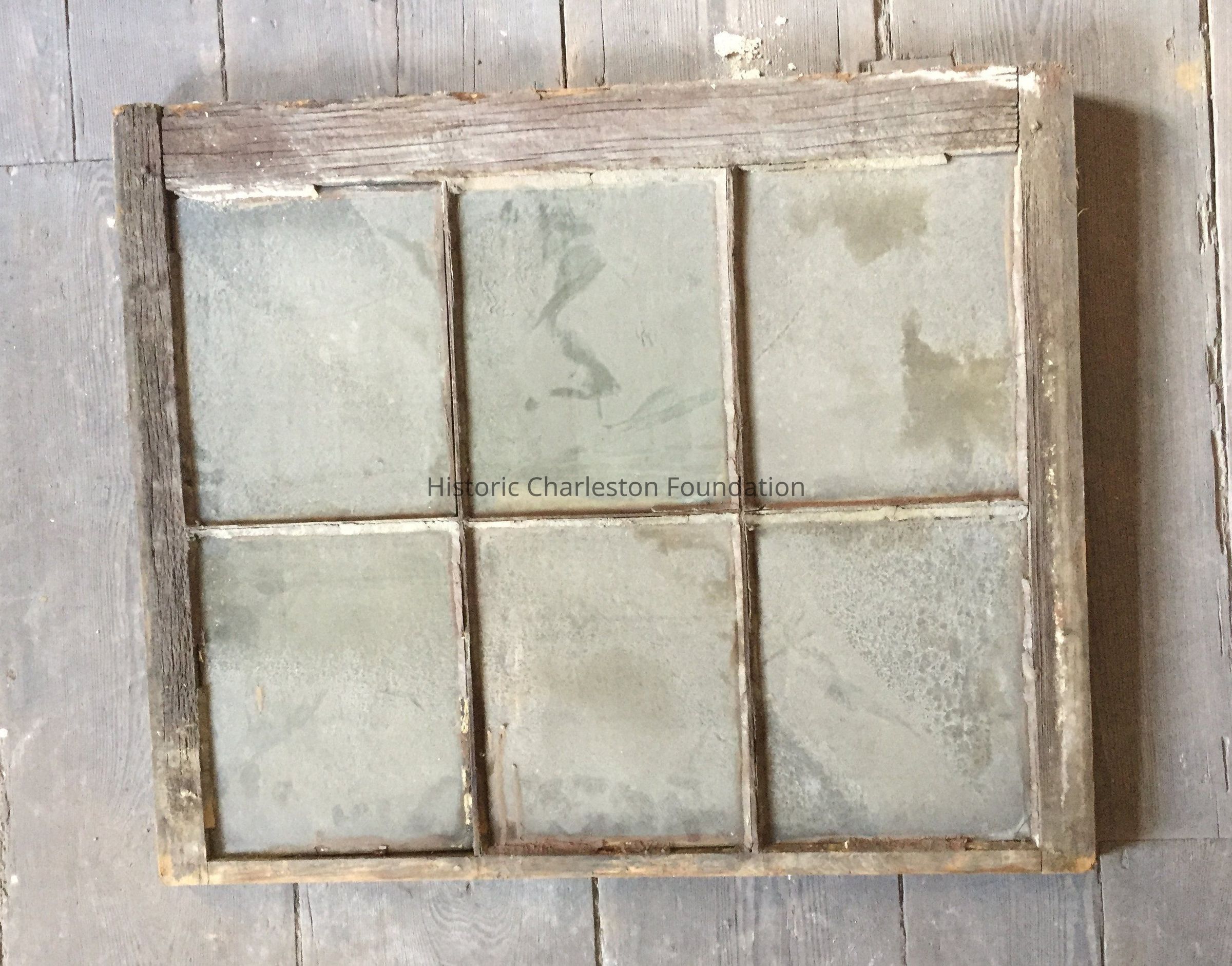 Six-over-six window, ca. 1805-1840. Dovetail joint. Bottom sash. In good condition except for rot on either the meeting or top/bottom rail. All six lights intact.Collection