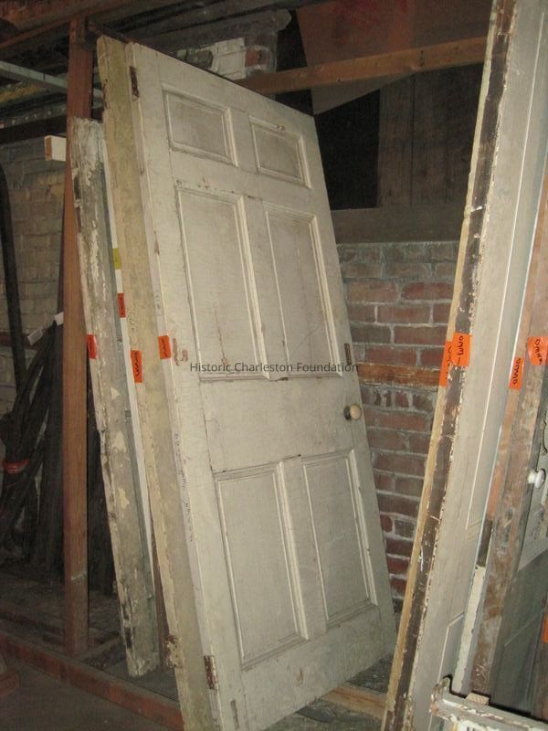 Six-Panel Door. 90"H x 41"W. Contains hardware and porcelain knob.