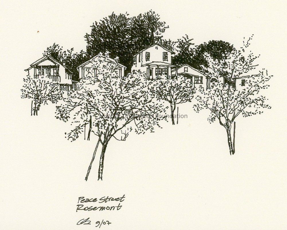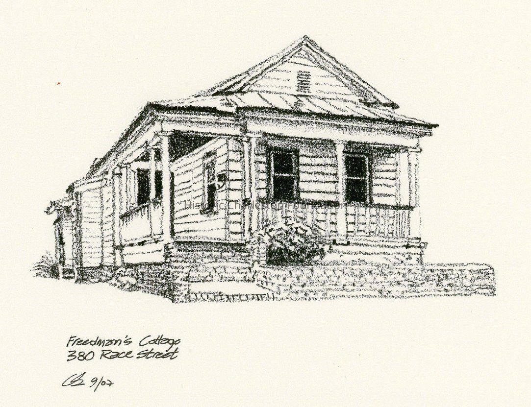 c: "Freedman's Cottage, 380 Race Street," charcoal on paper.