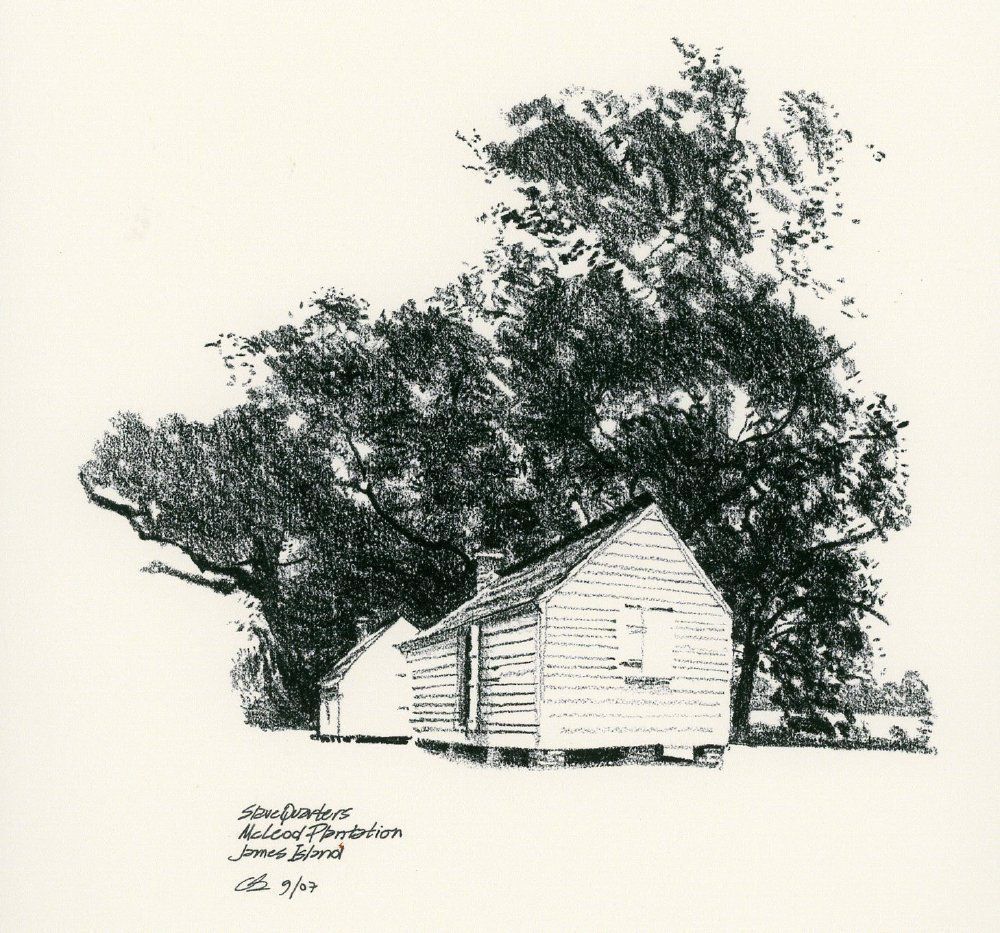 d: "Slave quarters, McLeod Plantation, James Island," charcoal on paper.Collection