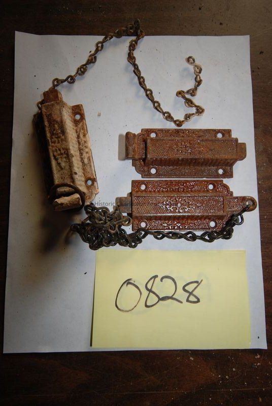 Twenty-three ornate sliding locks (surface bolts) from a set of 24, for French doors, with keepers.Collection