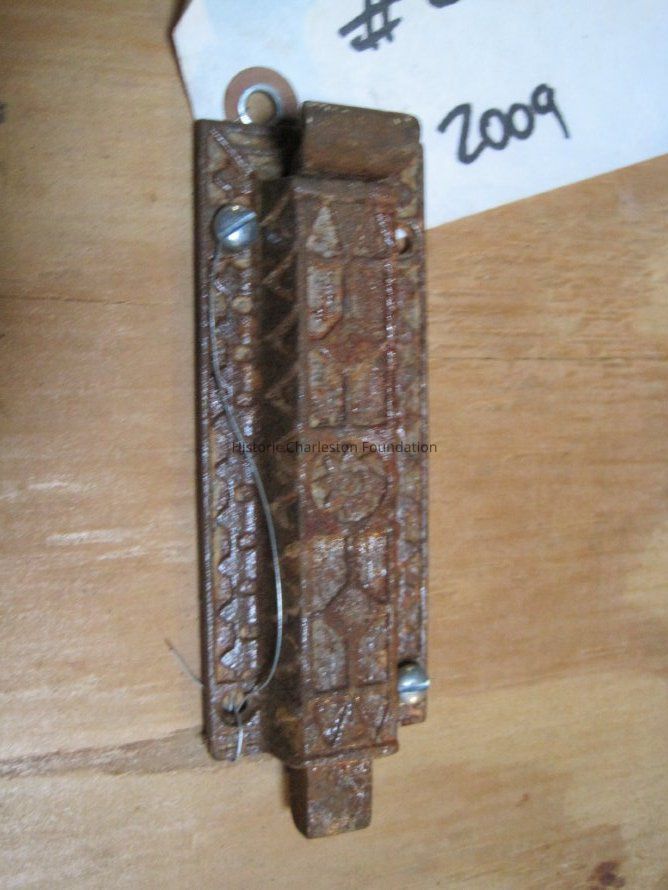 One of a group of 24 ornate sliding locks (surface bolts) for french doors, with keepers.Collection