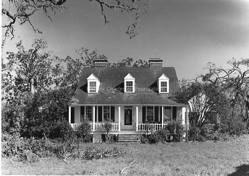 Two B&W photographs of Snee Farm after Hurricane Hugo (front facade).Collection