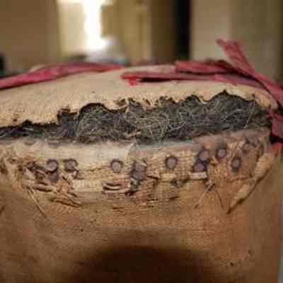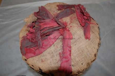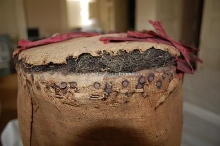 Red silk fabric fragments, filled with horsehair, with burlap underupholsteryCollection