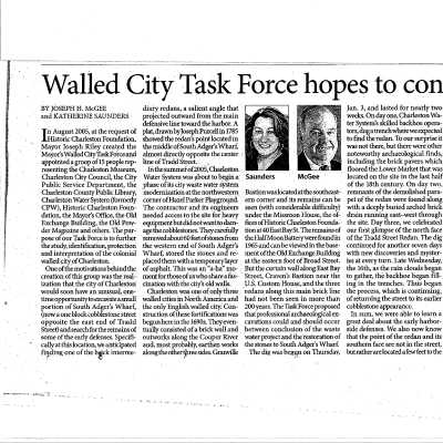 Crew: Eric Poplin, Andrew Agha, Jimmy Lefebre, Blair Stec, Damon Jackson, Brian Falls, Inna Burns, Scott Kitchens (from Brockington); Martha Zierden*, Ron Anthony (both from Charleston Museum); James "Tiny" Bonnett, Leroy Young (both from Charleston Water System); Katherine Saunders* (Historic Charleston Foundation); Nic Butler* (Charleston County Public Library)