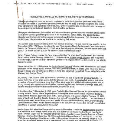 4. Nurserymen and Seed Merchants in Early South Carolina.