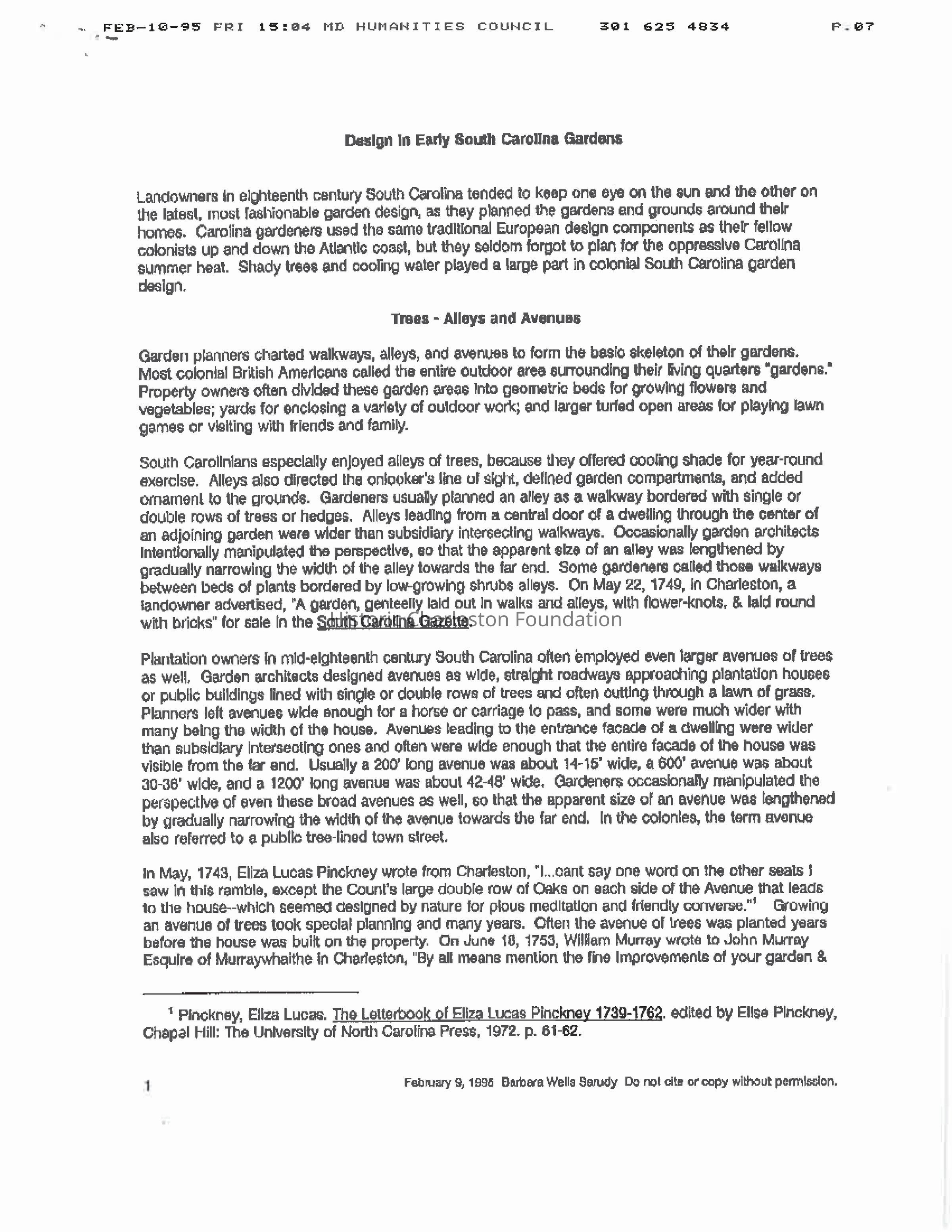 South Carolina Garden History ResearchEntry/Object ID