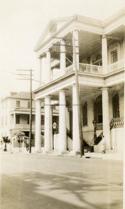 Photograph of South Carolina Society Hall (72 Meeting Street), view of the west (front) elevation, taken from across the street. South elevation of 76 Meeting at left.Collection