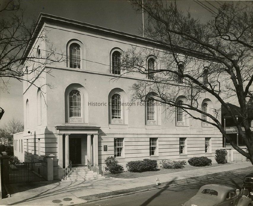 Several wooden houses were demolished in the late-1930s for the construction of what may be the finest early-20th century office building in Charleston. Atlanta’s noted classical architect Philip Trammell Shutze designed several hundred buildings for the Southern Bell Telephone and Telegraph Company. For this commission Shutze studied Savannah and Charleston architecture, particularly the work of William Jay, to design a public building in keeping with local architecture. The original portion of the Southern Bell Building consists of three stories with a rusticated ground floor set above a basement with lunette windows. A Doric-columned portico shelters the entry to the building. Upper-story windows, separated by belt coursing, feature semicircular heads and, on the second story, Greek fret panels beneath the sills. The latter features seem strongly derived from the William Mason Smith House at 26 Meeting Street, now even more positively attributed to Jay. Later horizontal and vertical additions have severely compromised the integrity of Shutze’s design, but its essential beauty remains intact. (Poston, The Buildings of Charleston.)Collection