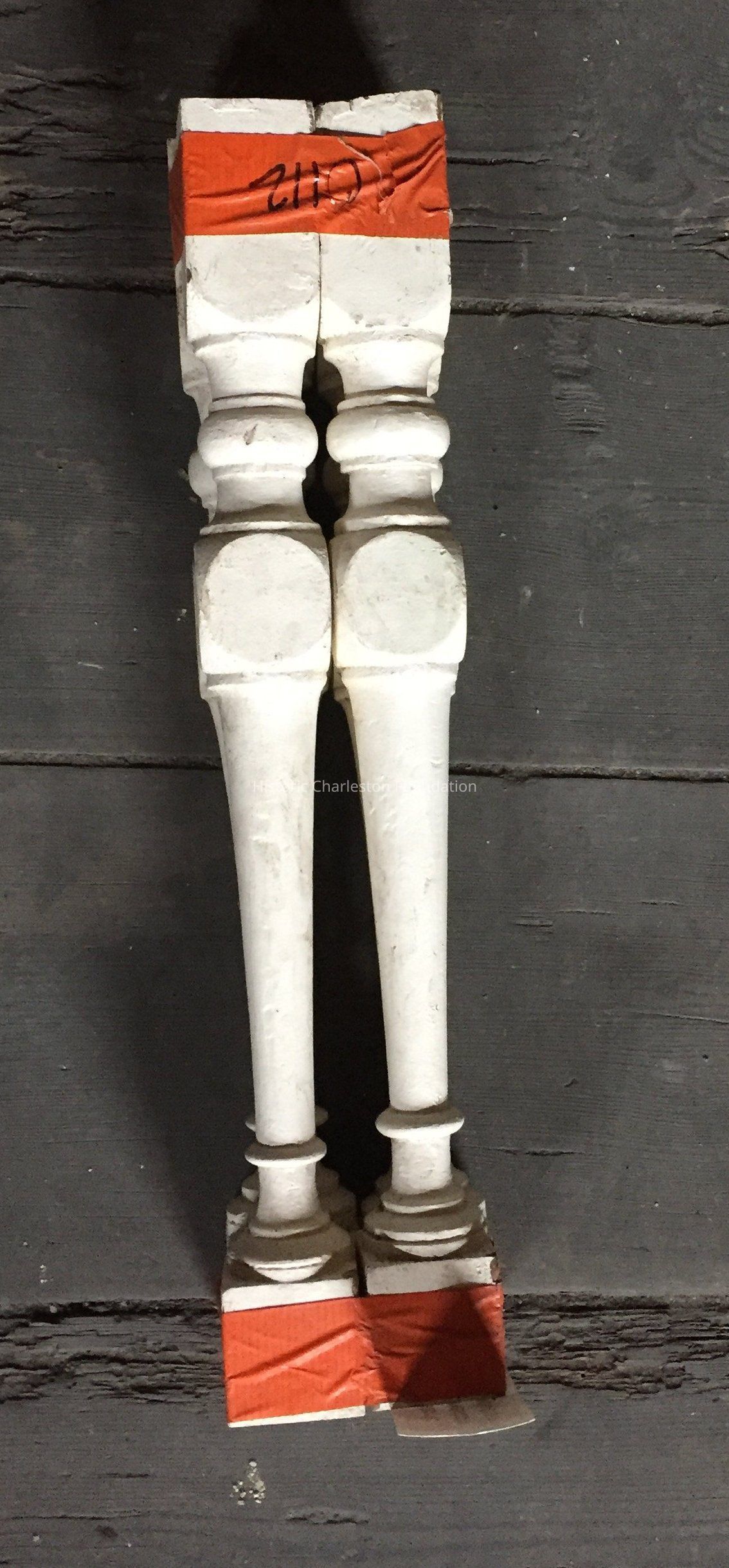 Four wood spindles, dated to 1865. Has a doweled top. Good condition with paint intact and no signs of cracks.Collection